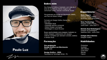 Esta apresentação reúne uma seleção dos meus principais trabalhos como designer gráfico, destacando projetos que refletem minha abordagem criativa, pensamento estratégico e atenção aos detalhes. O portfólio apresenta soluções visuais desenvolvidas para diferentes contextos, como identidade visual, materiais digitais e impressos, sempre alinhando estética e funcionalidade. Ao longo da apresentação, é possível compreender meu processo criativo, minhas habilidades técnicas e minha capacidade de transformar conceitos em comunicação visual eficiente.